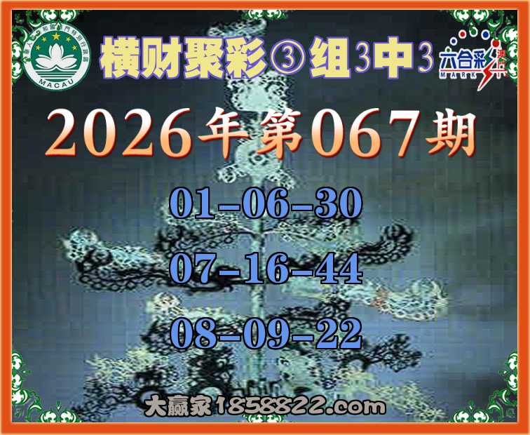 067期:《横财聚彩》 🍀③组3中3🍀
