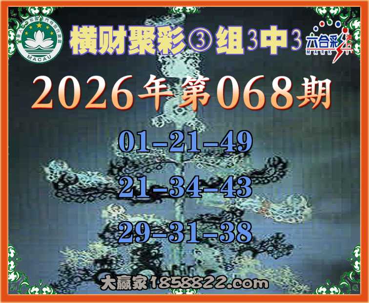 068期:《横财聚彩》 🍀③组3中3🍀
